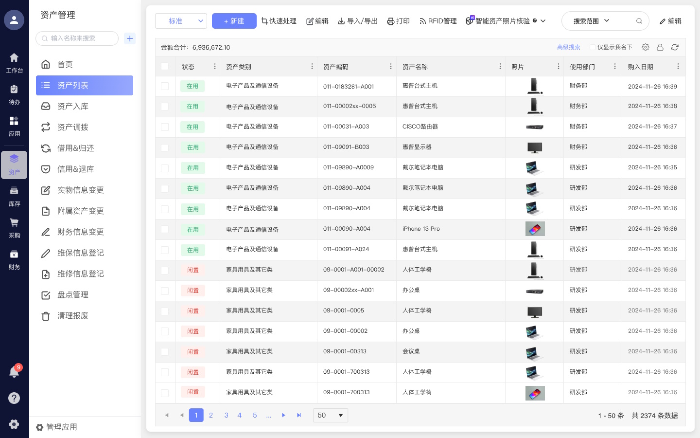 固定资产管理系统(一):对接财务系统/ERP,让资产的使用情况和增减变化自动同步到财务系统/ERP,实现数据全打通!